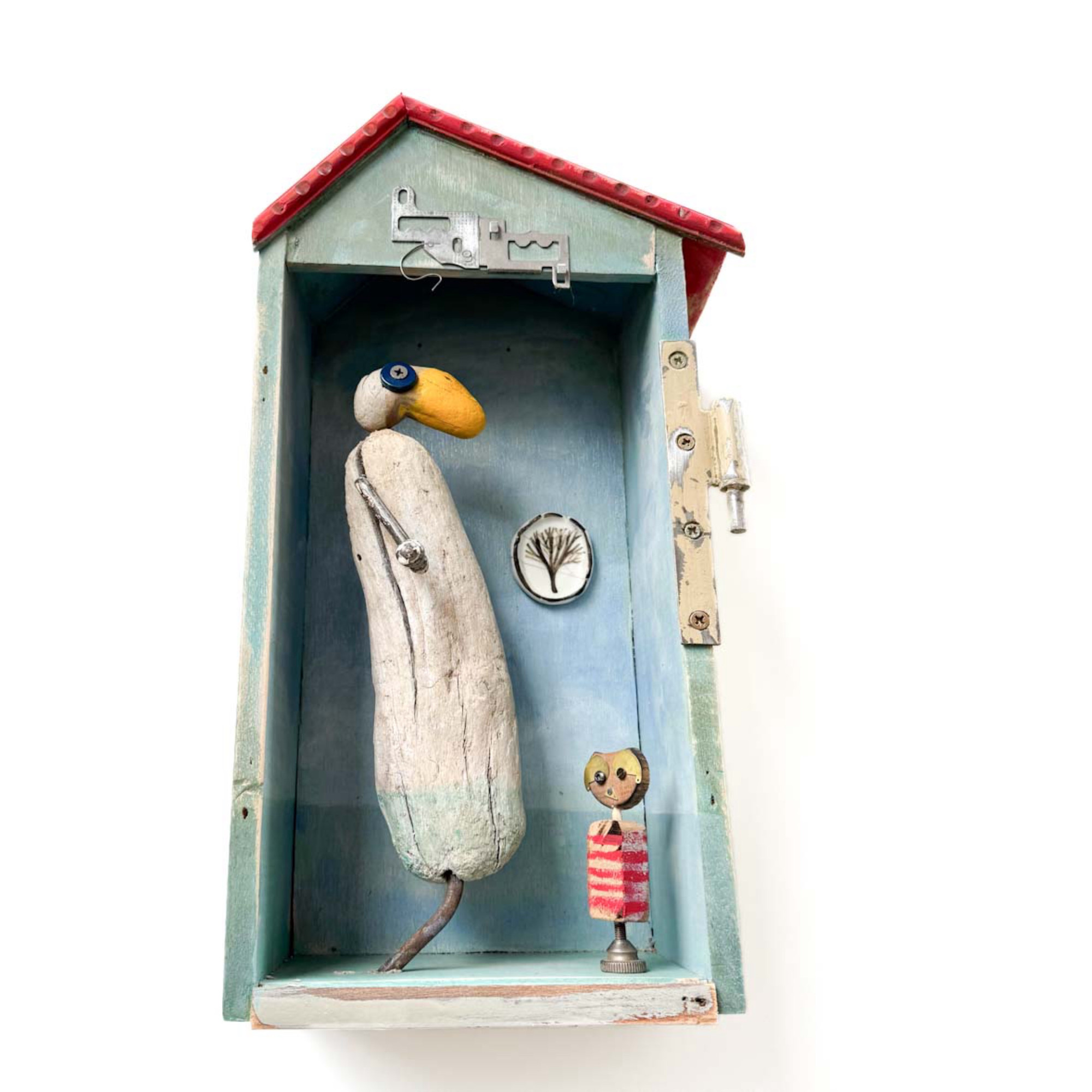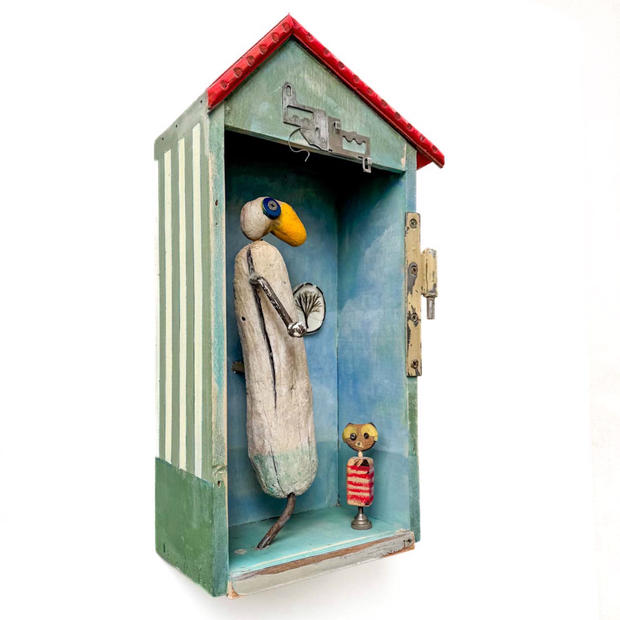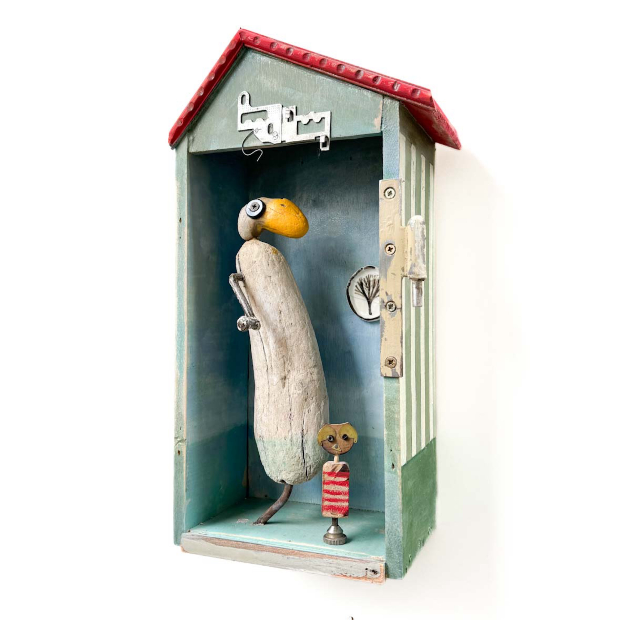 Lucrarea este realizată exclusiv din materiale reciclate. Bucăți de lemn, piese metalice, obiecte care nu iși mai gasc rostul sau utilitatea sunt recuperate de pe străzi, dîn garaje, șantiere, sau talciocuri pentru ca mai apoi să găsească o nouă înfățișare, un nou sens. Când aceste obiecte sunt pierd sensul și devin indezirabile, eu le recuperez, le recompun, le reconstruiesc sub o altă formă, devin un ADN pentru o nouă creație, o sursă pentru un nou început, ca o eternă poveste pheonix.
